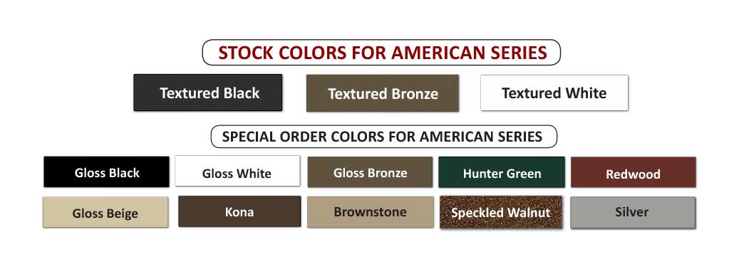 The American Series is a superior quality, durable, heavy wall, extruded aluminum railing finished in a weather resistant AAMA-2604 powder coating. Unique full length PVC inserts in both the top and bottom rails allow for a faster, screw-less assembly and creates a tight, quiet fit.